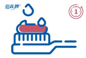 【此階段重點】將牙膏擠在牙刷上,再把牙膏均勻地塗抹在牙齒前後的表面、牙齦溝、牙縫,並使其泡沫化,清潔牙齒。